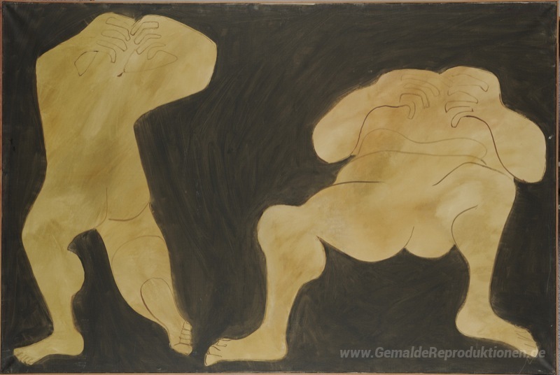 Wir bieten Ihnen eine handgefertigte Reproduktion auf Leinwand des berühmten Kunstwerks 'Zusammensetzung' von Nikos Nikolaou, aus dem Reproduktionsmuseum.