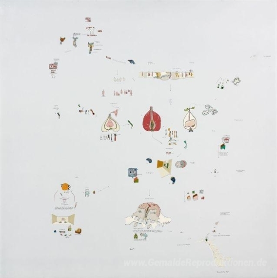 Wir bieten Ihnen eine handgefertigte Reproduktion auf Leinwand des berühmten Kunstwerks 'Cavali docili, resi noncuranti' von Gianfranco Baruchello, aus dem Reproduktionsmuseum.