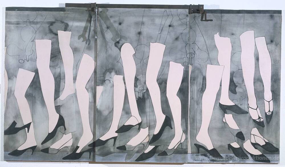 Wir bieten Ihnen eine handgefertigte Reproduktion auf Leinwand des berühmten Kunstwerks 'Gehen Traum mit einem Vier Fuß Clamp' von Jim Dine, aus dem Reproduktionsmuseum.