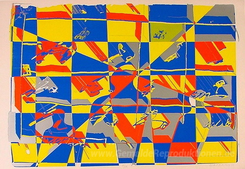 Wir bieten Ihnen eine handgefertigte Reproduktion auf Leinwand des berühmten Kunstwerks 'Probelauf (Testlauf)' von Dieter Roth, aus dem Reproduktionsmuseum.