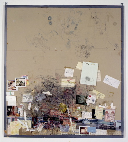 Wir bieten Ihnen eine handgefertigte Reproduktion auf Leinwand des berühmten Kunstwerks 'Tischmatte, Büro Hegenheimerstrasse, Unter' von Dieter Roth, aus dem Reproduktionsmuseum.