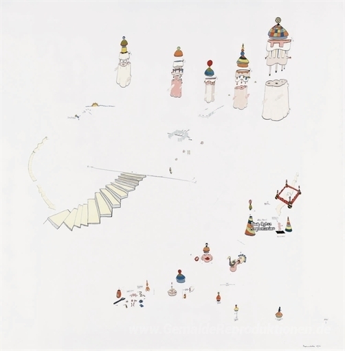 Wir bieten Ihnen eine handgefertigte Reproduktion auf Leinwand des berühmten Kunstwerks 'Wenig Orfan anphetamine' von Gianfranco Baruchello, aus dem Reproduktionsmuseum.
