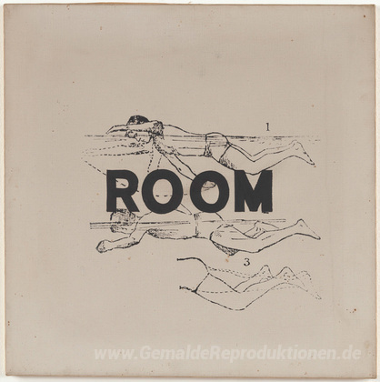 Wir bieten Ihnen eine handgefertigte Reproduktion auf Leinwand des berühmten Kunstwerks 'Zimmer (mit George Brecht)' von Alison Knowles, aus dem Reproduktionsmuseum.