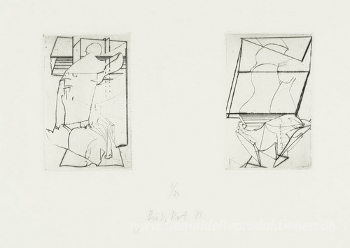 Wir bieten Ihnen eine handgefertigte Reproduktion auf Leinwand des berühmten Kunstwerks 'Zwei Personen' von Dieter Roth, aus dem Reproduktionsmuseum.
