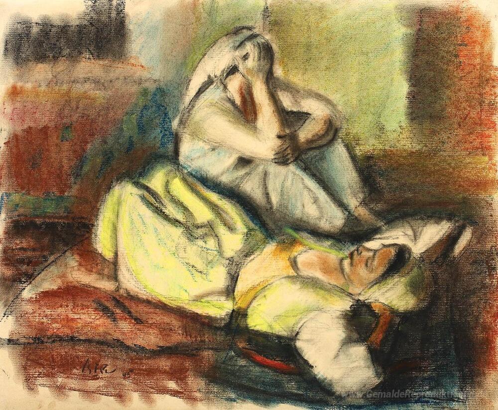 Wir bieten Ihnen eine handgefertigte Reproduktion auf Leinwand des berühmten Kunstwerks 'Odalisques Resting' von Iosif Iser, aus dem Reproduktionsmuseum.
