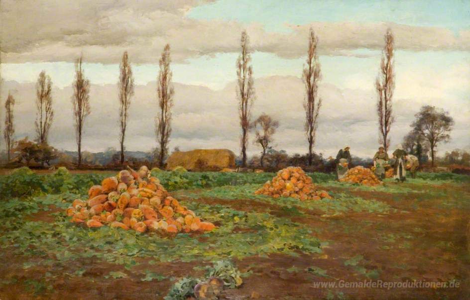 Wir bieten Ihnen eine handgefertigte Reproduktion auf Leinwand des berühmten Kunstwerks 'Der Schwede Ernte' von Alfred Parsons, aus dem Reproduktionsmuseum.