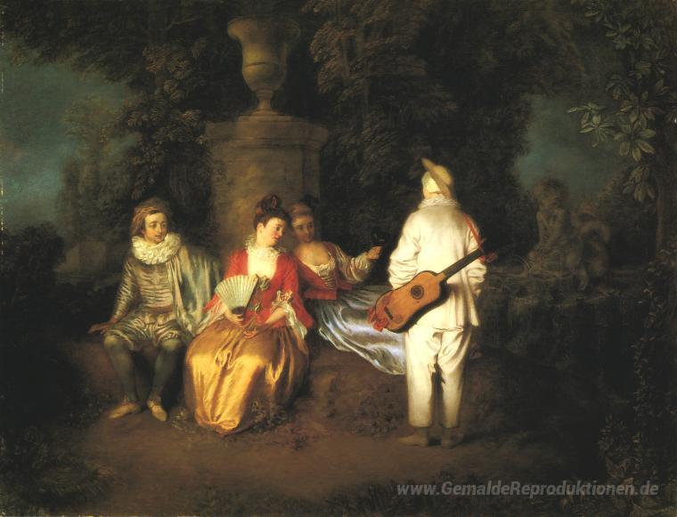 Wir bieten Ihnen eine handgefertigte Reproduktion auf Leinwand des berühmten Kunstwerks 'Der Vierer' von Antoine Watteau, aus dem Reproduktionsmuseum.