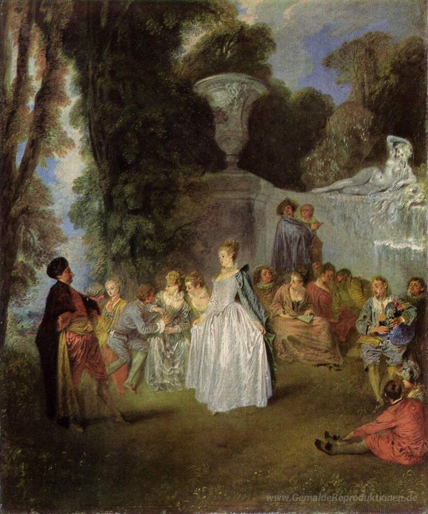 Wir bieten Ihnen eine handgefertigte Reproduktion auf Leinwand des berühmten Kunstwerks 'Die Feste von Venedig' von Antoine Watteau, aus dem Reproduktionsmuseum.