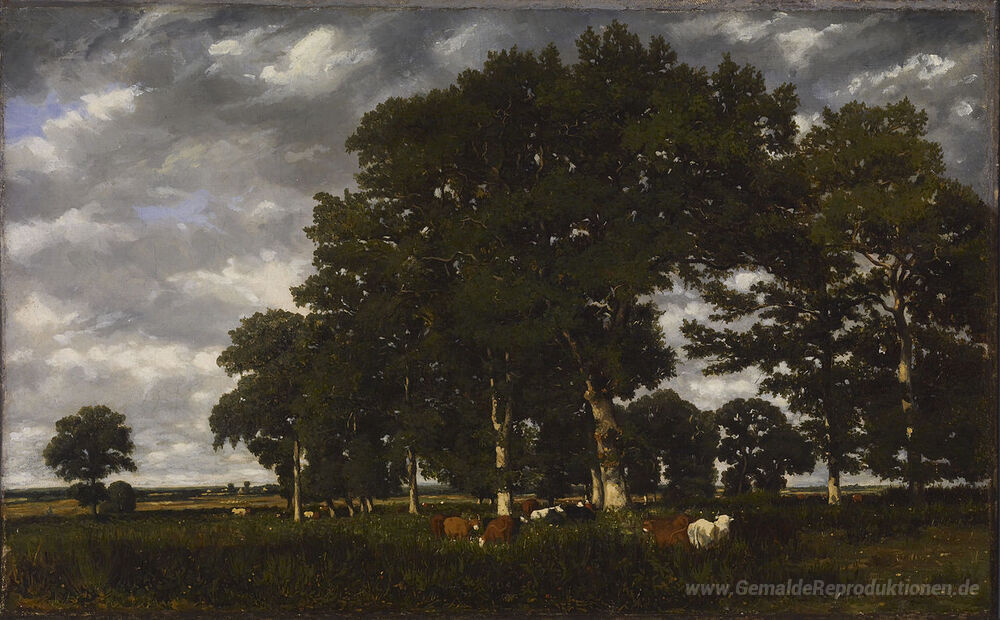 Wir bieten Ihnen eine handgefertigte Reproduktion auf Leinwand des berühmten Kunstwerks 'Einem hellen Tag' von Jules Dupre, aus dem Reproduktionsmuseum.