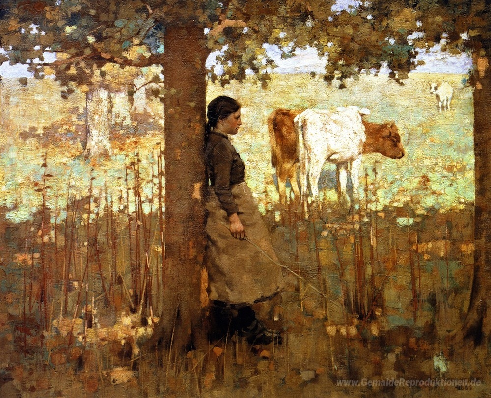 Wir bieten Ihnen eine handgefertigte Reproduktion auf Leinwand des berühmten Kunstwerks 'Mittag' von George Henry, aus dem Reproduktionsmuseum.