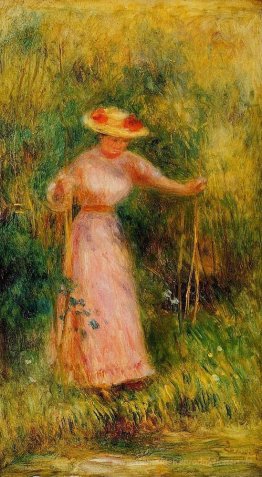 Frau trägt einen Hut in einer Landschaft