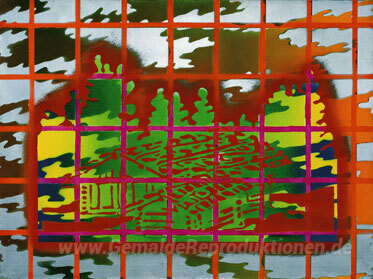 Wir bieten Ihnen eine handgefertigte Reproduktion auf Leinwand des berühmten Kunstwerks 'Châlet psychédélique' von Samuel Buri, aus dem Reproduktionsmuseum.