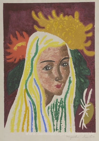 Wir bieten Ihnen eine handgefertigte Reproduktion auf Leinwand des berühmten Kunstwerks 'A Blonde' von Kiyoshi Saito, aus dem Reproduktionsmuseum.