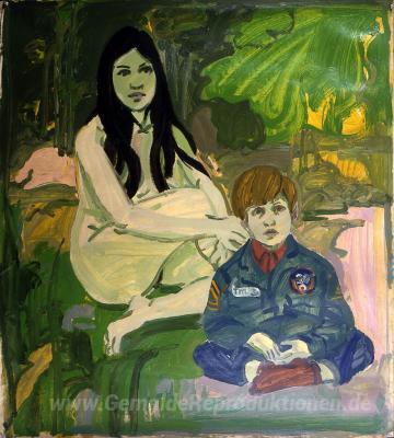 Wir bieten Ihnen eine handgefertigte Reproduktion auf Leinwand des berühmten Kunstwerks 'Abbildung mit Kind' von Neil Welliver, aus dem Reproduktionsmuseum.