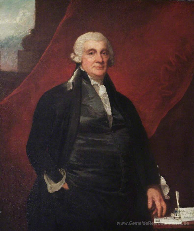 Wir bieten Ihnen eine handgefertigte Reproduktion auf Leinwand des berühmten Kunstwerks 'Abraham Newland (1730-1807), Vorsitzender der Kassierer der Bank' von George Romney, aus dem Reproduktionsmuseum.