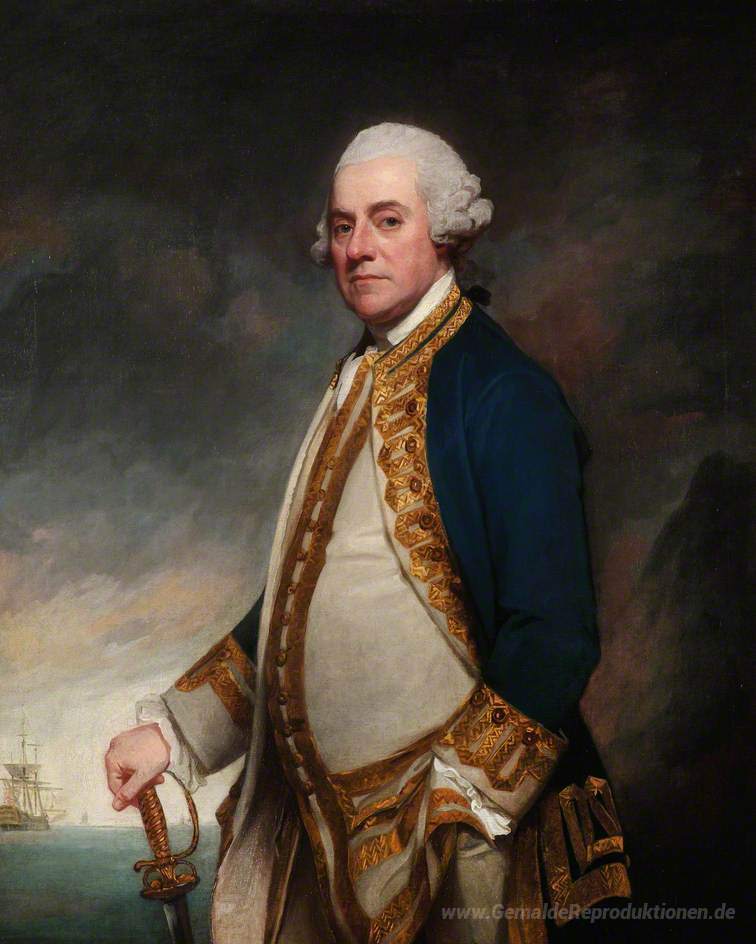 Wir bieten Ihnen eine handgefertigte Reproduktion auf Leinwand des berühmten Kunstwerks 'Admiral Sir Charles Hardy (c.1716-1780)' von George Romney, aus dem Reproduktionsmuseum.