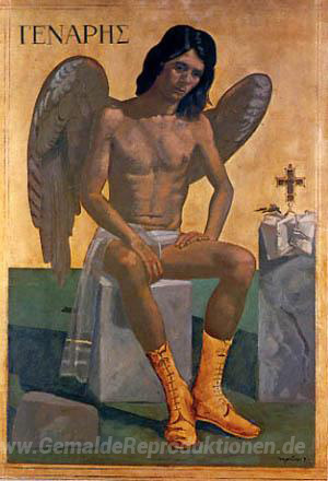 Wir bieten Ihnen eine handgefertigte Reproduktion auf Leinwand des berühmten Kunstwerks 'Alain als '' Jenuary ''' von Yiannis Tsaroychis, aus dem Reproduktionsmuseum.