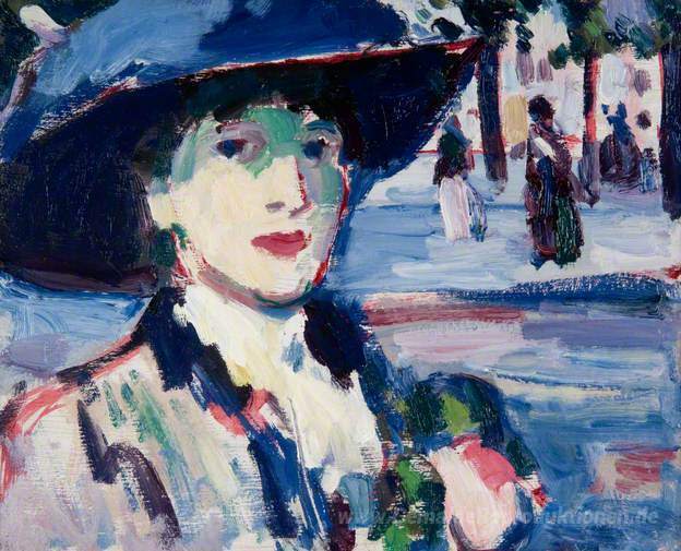 Wir bieten Ihnen eine handgefertigte Reproduktion auf Leinwand des berühmten Kunstwerks 'Anne Estelle Rice in Paris (Closerie des Lilas)' von John Duncan Fergusson, aus dem Reproduktionsmuseum.