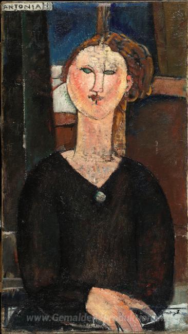 Wir bieten Ihnen eine handgefertigte Reproduktion auf Leinwand des berühmten Kunstwerks 'Antonia' von Amedeo Modigliani, aus dem Reproduktionsmuseum.