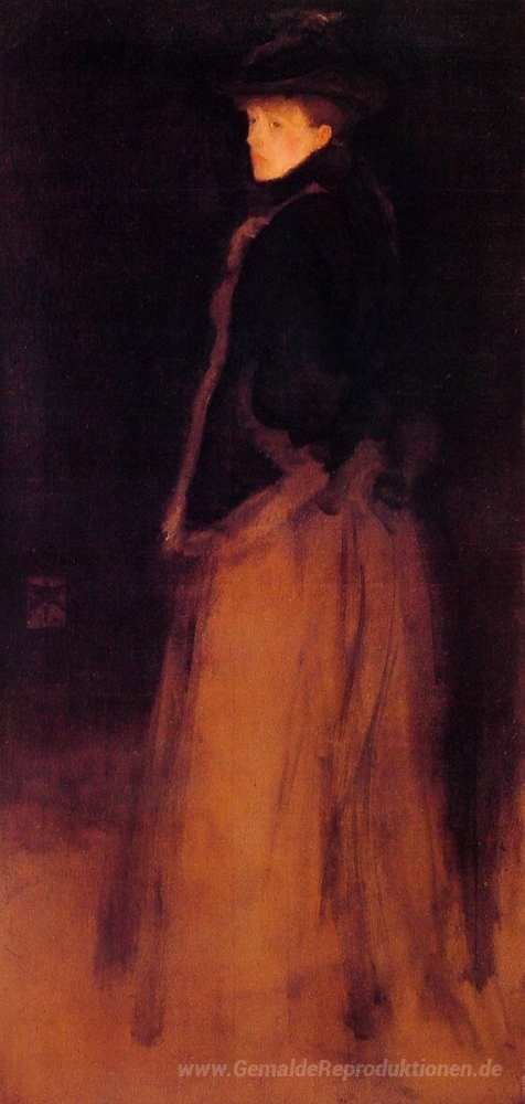 Wir bieten Ihnen eine handgefertigte Reproduktion auf Leinwand des berühmten Kunstwerks 'Arrangement in Schwarz und Braun: Die Pelzjacke' von James McNeill Whistler, aus dem Reproduktionsmuseum.