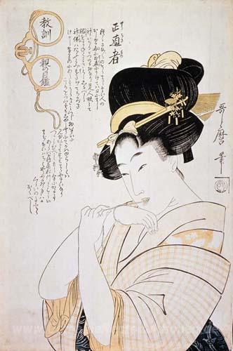 Wir bieten Ihnen eine handgefertigte Reproduktion auf Leinwand des berühmten Kunstwerks 'Auf meinen Eid' von Kitagawa Utamaro, aus dem Reproduktionsmuseum.