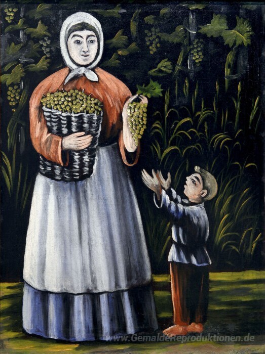 Wir bieten Ihnen eine handgefertigte Reproduktion auf Leinwand des berühmten Kunstwerks 'Bäuerin mit Jungen' von Niko Pirosmani, aus dem Reproduktionsmuseum.