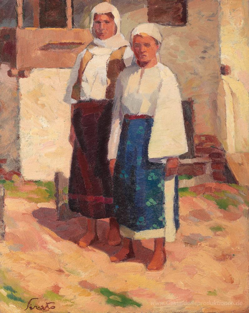 Wir bieten Ihnen eine handgefertigte Reproduktion auf Leinwand des berühmten Kunstwerks 'Bäuerinnen von Dolj' von Francisc Sirato, aus dem Reproduktionsmuseum.