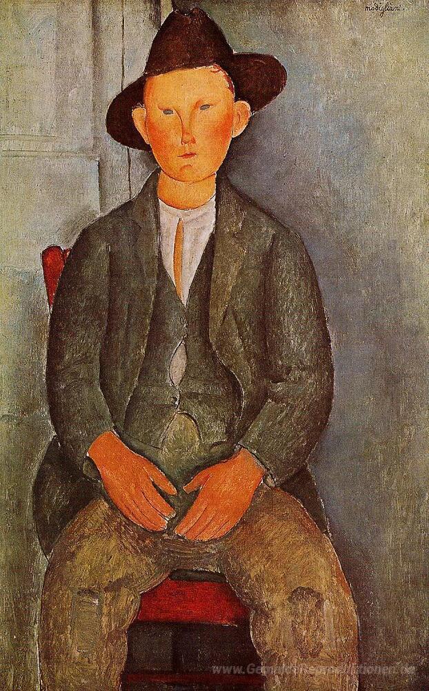 Wir bieten Ihnen eine handgefertigte Reproduktion auf Leinwand des berühmten Kunstwerks 'Bürle' von Amedeo Modigliani, aus dem Reproduktionsmuseum.