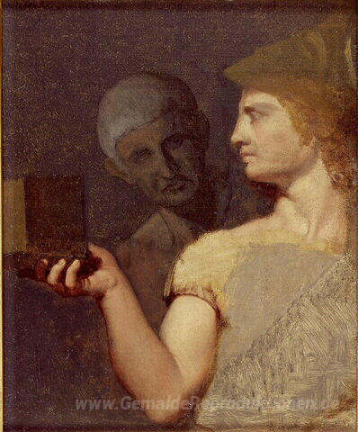 Wir bieten Ihnen eine handgefertigte Reproduktion auf Leinwand des berühmten Kunstwerks 'Büste von Alexander und Aristarch' von Jean Auguste Dominique Ingres, aus dem Reproduktionsmuseum.