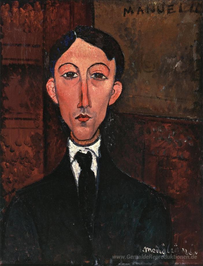 Wir bieten Ihnen eine handgefertigte Reproduktion auf Leinwand des berühmten Kunstwerks 'Büste von Manuel Humbert' von Amedeo Modigliani, aus dem Reproduktionsmuseum.