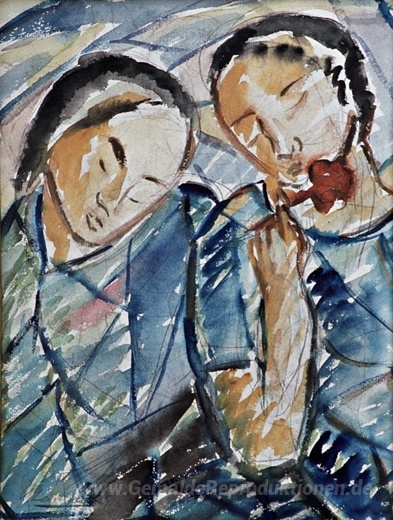 Wir bieten Ihnen eine handgefertigte Reproduktion auf Leinwand des berühmten Kunstwerks 'Babes ja ruusu' von Vilho Lampi, aus dem Reproduktionsmuseum.