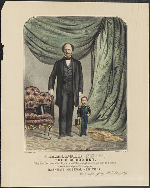 Wir bieten Ihnen eine handgefertigte Reproduktion auf Leinwand des berühmten Kunstwerks 'Barnum und Nutt' von Currier and Ives, aus dem Reproduktionsmuseum.