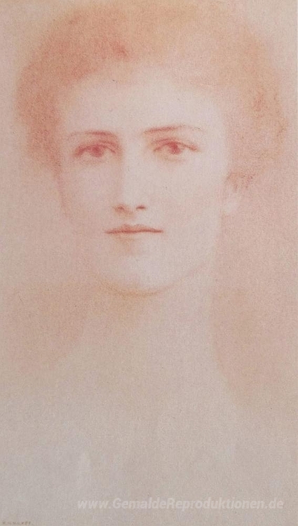 Wir bieten Ihnen eine handgefertigte Reproduktion auf Leinwand des berühmten Kunstwerks 'Baroness Fernand van der Bruggen' von Fernand Khnopff, aus dem Reproduktionsmuseum.