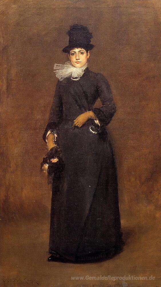 Wir bieten Ihnen eine handgefertigte Reproduktion auf Leinwand des berühmten Kunstwerks 'Bereit für einen Spaziergang Beatrice Bachmann Clough' von William Merritt Chase, aus dem Reproduktionsmuseum.