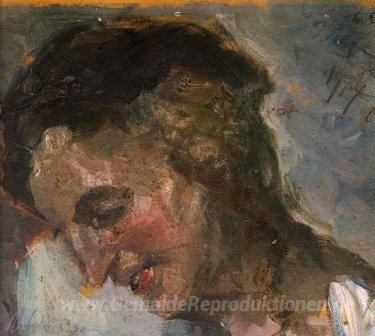 Wir bieten Ihnen eine handgefertigte Reproduktion auf Leinwand des berühmten Kunstwerks 'Bildnis der Frau des Malers' von George Bouzianis, aus dem Reproduktionsmuseum.