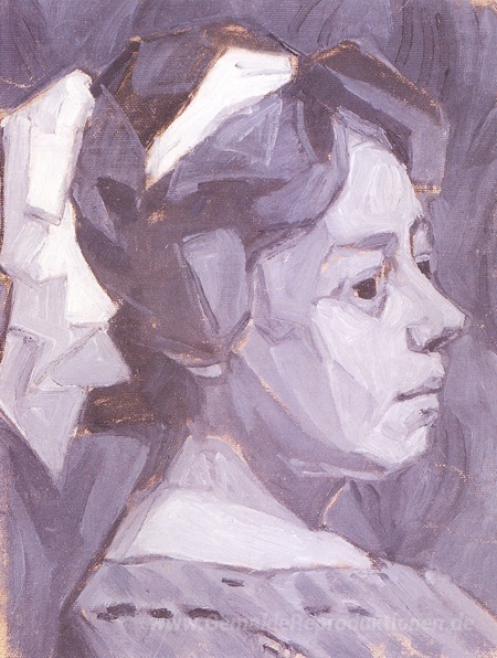 Wir bieten Ihnen eine handgefertigte Reproduktion auf Leinwand des berühmten Kunstwerks 'Bildnis der Frau' von Oleksandr Bogomazov, aus dem Reproduktionsmuseum.