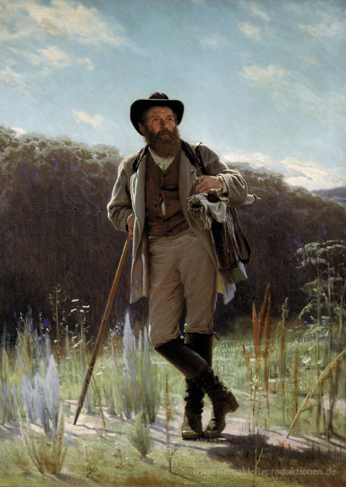Wir bieten Ihnen eine handgefertigte Reproduktion auf Leinwand des berühmten Kunstwerks 'Bildnis des Malers Iwan Shishkin' von Ivan Kramskoy, aus dem Reproduktionsmuseum.