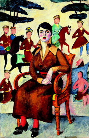 Wir bieten Ihnen eine handgefertigte Reproduktion auf Leinwand des berühmten Kunstwerks 'Bildnis einer Dame auf einem Stuhl' von Ilya Mashkov, aus dem Reproduktionsmuseum.