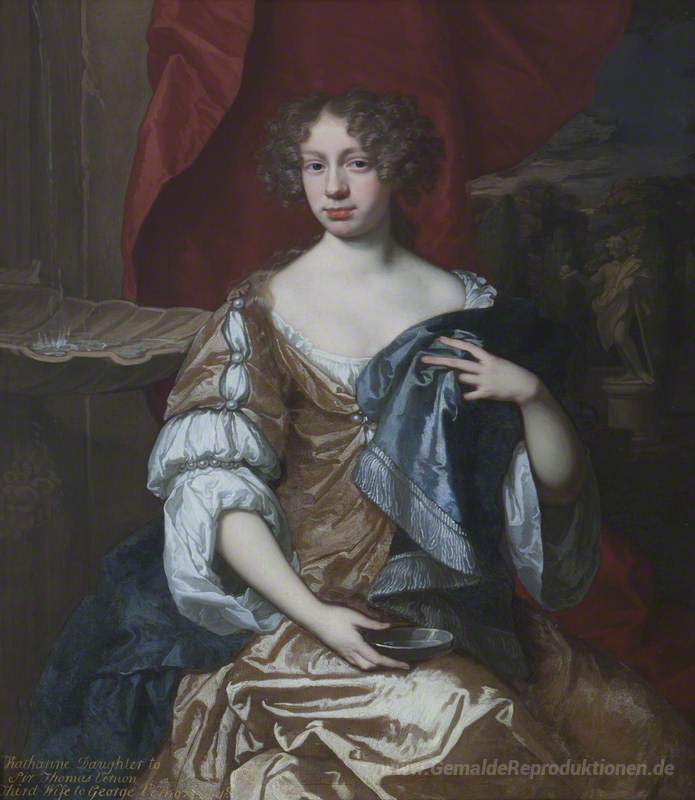 Wir bieten Ihnen eine handgefertigte Reproduktion auf Leinwand des berühmten Kunstwerks 'Catherine Vernon, Mrs George Vernon von Sudbury' von John Riley, aus dem Reproduktionsmuseum.
