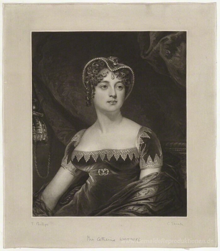 Wir bieten Ihnen eine handgefertigte Reproduktion auf Leinwand des berühmten Kunstwerks 'Catherine Whitmore (née Thomason)' von Charles Turner, aus dem Reproduktionsmuseum.