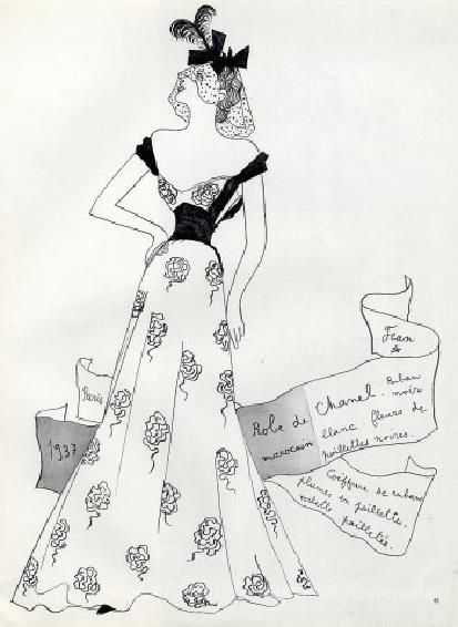 Wir bieten Ihnen eine handgefertigte Reproduktion auf Leinwand des berühmten Kunstwerks 'Chanel Couture Haute' von Jean Cocteau, aus dem Reproduktionsmuseum.