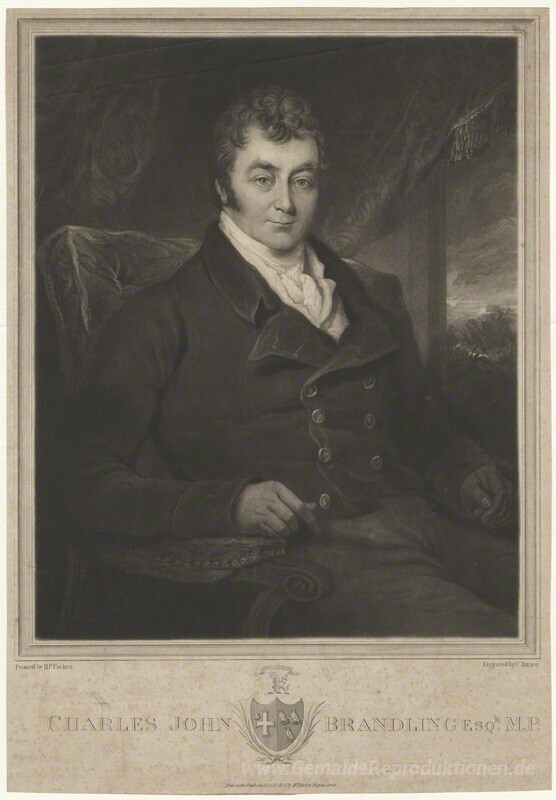 Wir bieten Ihnen eine handgefertigte Reproduktion auf Leinwand des berühmten Kunstwerks 'Charles John Brandling' von Charles Turner, aus dem Reproduktionsmuseum.