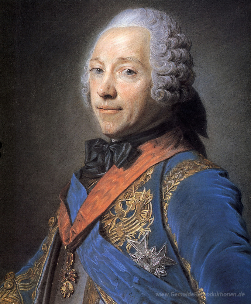 Wir bieten Ihnen eine handgefertigte Reproduktion auf Leinwand des berühmten Kunstwerks 'Charles Louis Fouquet, Duke of Belle Isle' von Maurice Quentin de La Tour, aus dem Reproduktionsmuseum.