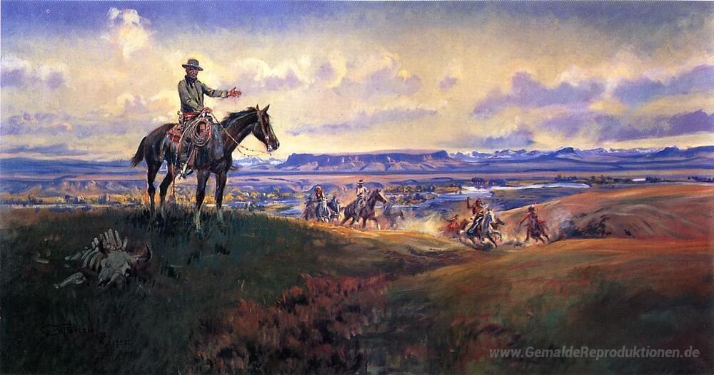 Willkommen in unserer exquisiten Sammlung von Ölgemälden, in der Meisterwerke wie Charles M. Russell und seine Freunde hervorstechen. Der legendäre Künstler Charles M. Russell, bekannt für seine lebendigen Darstellungen des amerikanischen Westens, kombiniert meisterhaft Farbpsychologie und dynamische Kompositionen. Seine Werke fangen nicht nur die zeitlose Schönheit der Natur ein, sondern erzählen auch Geschichten, die den Betrachter tief berühren.