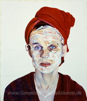 Wir bieten Ihnen eine handgefertigte Reproduktion auf Leinwand des berühmten Kunstwerks 'Cold Cream' von Mary Pratt, aus dem Reproduktionsmuseum.