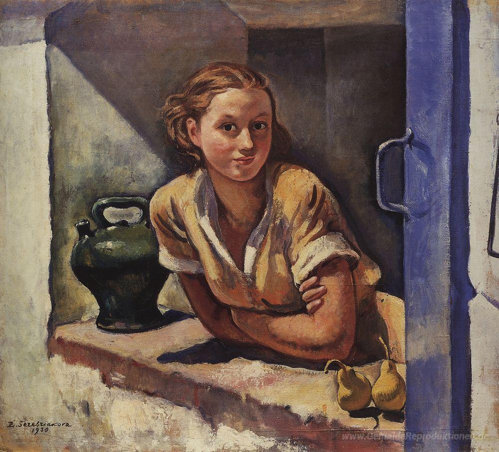 Wir bieten Ihnen eine handgefertigte Reproduktion auf Leinwand des berühmten Kunstwerks 'Collioure. Katia auf der Terrasse' von Zinaida Serebriakova, aus dem Reproduktionsmuseum.