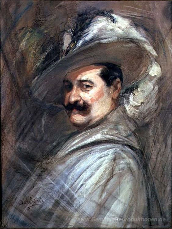 Wir bieten Ihnen eine handgefertigte Reproduktion auf Leinwand des berühmten Kunstwerks 'Costantino in der Rolle Ernani' von Giovanni Boldini, aus dem Reproduktionsmuseum.