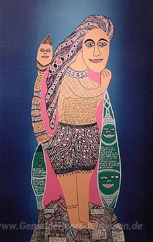 Willkommen in unserer exquisiten Kollektion von Ölgemälden, wo Kunst und Leidenschaft auf einzigartige Weise verschmelzen. Jedes Werk erzählt seine eigene Geschichte und bringt den kreativen Ausdruck außergewöhnlicher Künstler zur Geltung. Ein herausragendes Beispiel ist das faszinierende Gemälde Cow Lady des renommierten Künstlers Howard Finster. Finster, bekannt für seine symbolhaften und oft religiösen Motive, hat einen unverwechselbaren Stil entwickelt, der sowohl traditionelle als auch naive Kunstformen vereint.