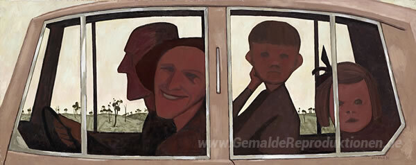 Wir bieten Ihnen eine handgefertigte Reproduktion auf Leinwand des berühmten Kunstwerks 'Das Auto' von John Brack, aus dem Reproduktionsmuseum.