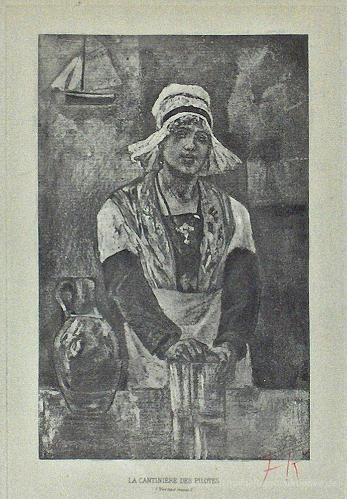 Wir bieten Ihnen eine handgefertigte Reproduktion auf Leinwand des berühmten Kunstwerks 'Das Mädchen in der Cantine für Piloten' von Felicien Rops, aus dem Reproduktionsmuseum.